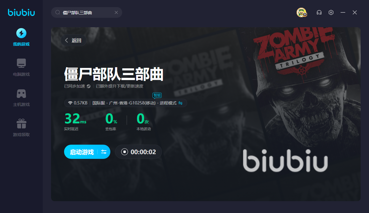 僵尸部隊三部曲是款風靡海外的游戲,目前仍舊未有國服。打算去其他位面攻打僵尸,寶子們就得打開biubiu。便可獲得進入僵尸世界的條件,讓你擁有極速網絡,輕松降臨游戲!若是想體驗僵尸世界有沒有趣的話,新用戶可領取24H的免費加速。另外新老用戶都能使用【biubiu不卡頓】,即可獲得三天免費就是。讓你成功擊敗大量僵尸,成就感滿滿。剛進入游戲,若是卡頓的話,容易被僵尸吞噬。有了biubiu后,便可告別卡頓,讓你成功躲避高等級僵尸的搜查。