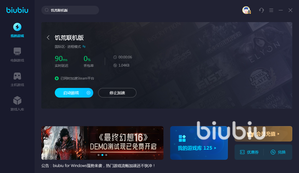 如果在聯(lián)機(jī)過(guò)程中出現(xiàn)卡頓嚴(yán)重情況,可以在電腦中下載biubiu加速器來(lái)解決,這是一款在PC端有著出色應(yīng)用的游戲加速軟件。利用自身獨(dú)特技術(shù)可以對(duì)網(wǎng)絡(luò)進(jìn)行優(yōu)化,并且在擁堵時(shí)刻選擇更為流暢路徑,這樣就可以起到降低延遲,避免出現(xiàn)卡頓問(wèn)題。只要參與聯(lián)機(jī)玩家都能下載該軟件,這種情況就能大大改善。另外出現(xiàn)卡頓嚴(yán)重原因,還和跨服有著極大關(guān)系,畢竟這款游戲目前只在國(guó)際區(qū)才能體驗(yàn)到。國(guó)服登陸本來(lái)就困難重重,但是利用這款加速軟件也可以同步解決跨服問(wèn)題,功能非常強(qiáng)大。
