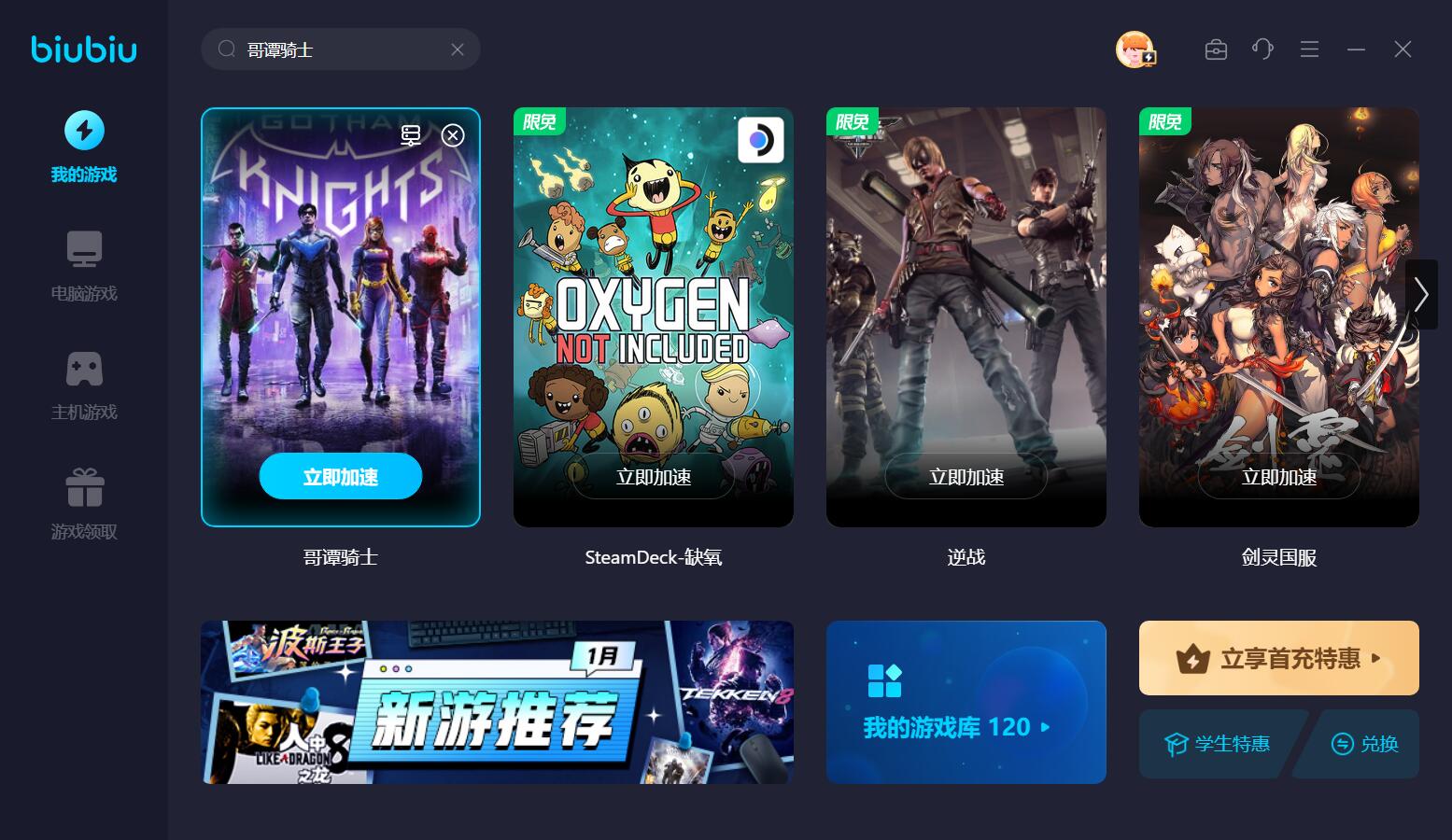經(jīng)過多次更新之后,現(xiàn)在軟件中啟動加速功能的步驟變少了很多,就算你之前沒用過加速類應(yīng)用,也可以快速上手,熟悉如何操作。就以哥譚騎士這個游戲來說,使用檢索功能找到它專屬的加速入口,然后點擊圖標上面的立即加速就行了。