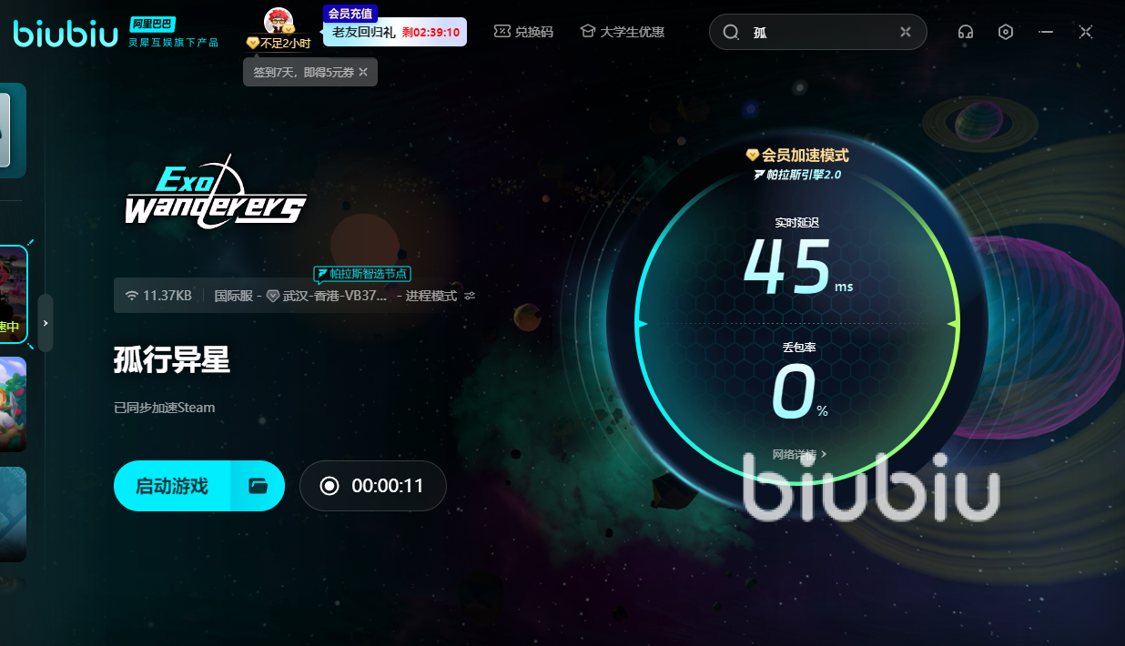 biubiu加速器新人下載注冊就可以獲得長達(dá)24小時(shí)的免費(fèi)會員加速時(shí)長體驗(yàn),結(jié)束之后如果游戲沒有玩過癮怎么辦,直接在兌換碼兌換入口中輸入【biubiu不卡頓】就能夠再次額外獲得72小時(shí)的會員時(shí)長,這樣下來合計(jì)總共96小時(shí),夠玩家們在這次孤行異星測試階段玩的開心了。如果是大學(xué)生群體的話,還會有接近半價(jià)的折扣會員購買折扣活動,前往大學(xué)生優(yōu)惠入口完成學(xué)信網(wǎng)的驗(yàn)證即可享受和舍友的父子開黑局了。