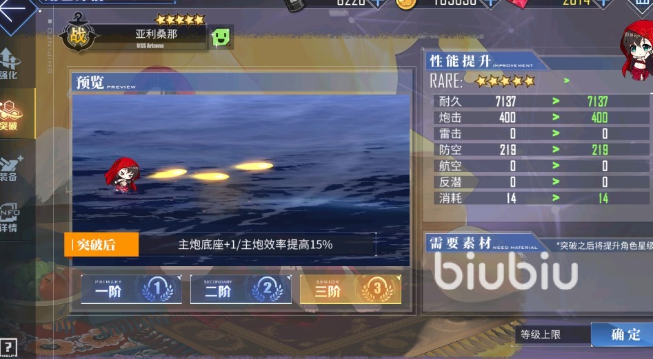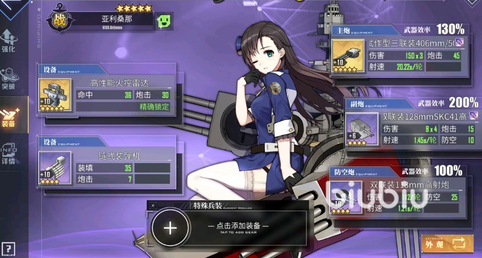 亞利桑那的專武對應(yīng)的是“不再哭泣”。制作需要消耗15個特殊兵裝核心,并花費1萬物資。該專武可以使得亞利桑那的主炮加載時間縮短10%,但造成的傷害降低15%,dps上是提升了,但dph降低了。