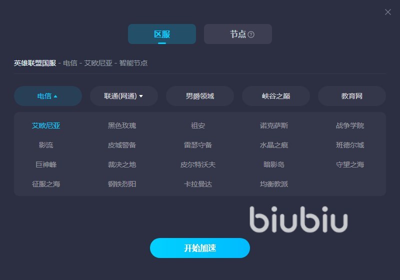 關(guān)于國(guó)服lol用什么加速器最好就給大家介紹到這里,根據(jù)小編對(duì)這類軟件的使用體驗(yàn)來(lái)說(shuō),biubiu是一個(gè)非常不錯(cuò)的選擇,能很好緩解大家因?yàn)椴煌瑢拵А^(qū)服導(dǎo)致的游戲延遲問(wèn)題,提升大家的游戲體驗(yàn)。