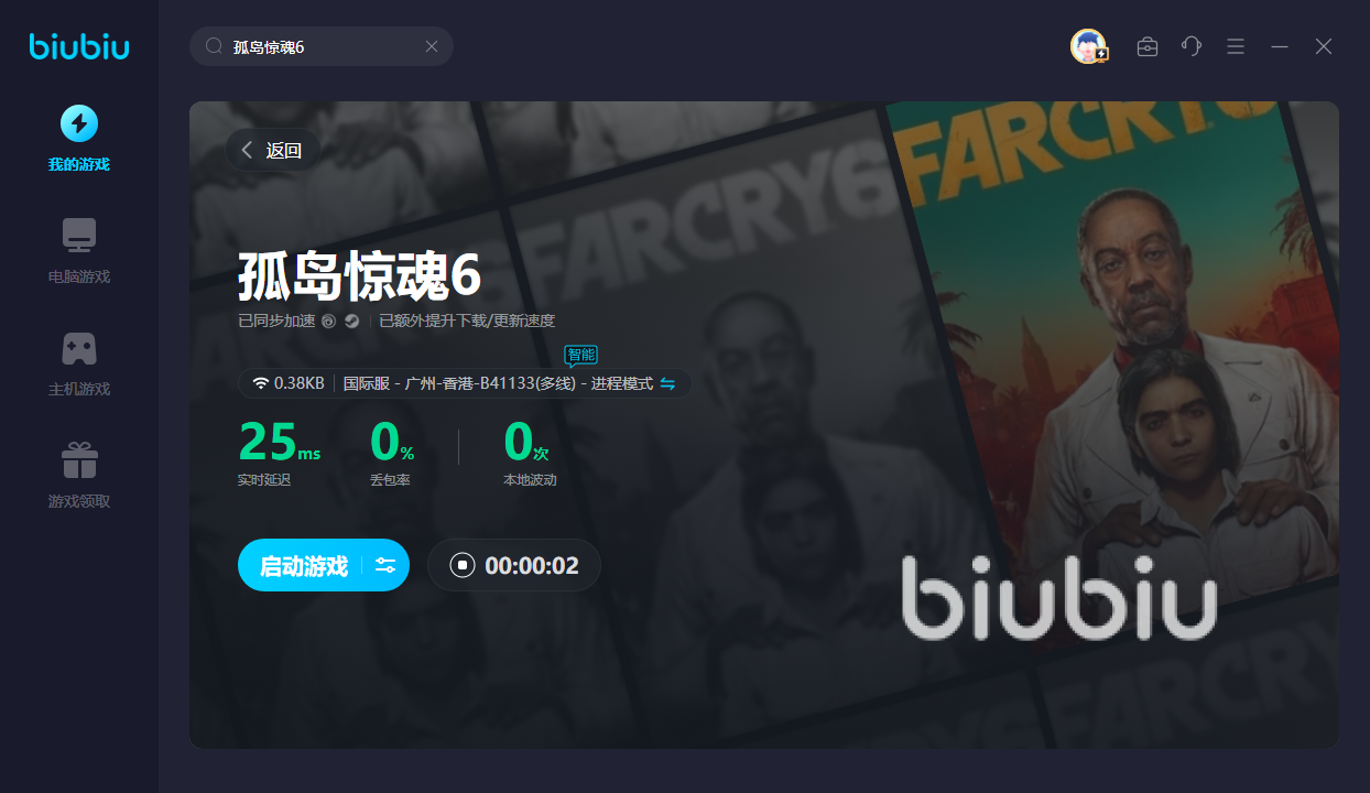 因為孤島驚魂6是款國際游戲,目前仍舊木有國服。所以為了擊敗海外的游戲?qū)κ郑瑢氉觽兙托璐蜷_biubiu。用了它方可提速,輕松進(jìn)入不同區(qū)域的罪惡島嶼,讓你開啟新故事。新用戶的話可領(lǐng)取24H的免費(fèi)加速,另外新老用戶都能使用【biubiu不卡頓】,便可享受三天免費(fèi)加速。這樣即可有更多的時間完成大量的劇情,讓你無懼各路妖魔。游戲初期時會涌現(xiàn)很多僵尸、怪物,網(wǎng)絡(luò)一卡就很難解決它們。在加速器的協(xié)助下,便可擁有極致網(wǎng)速,三下五除二即可搞定它們。