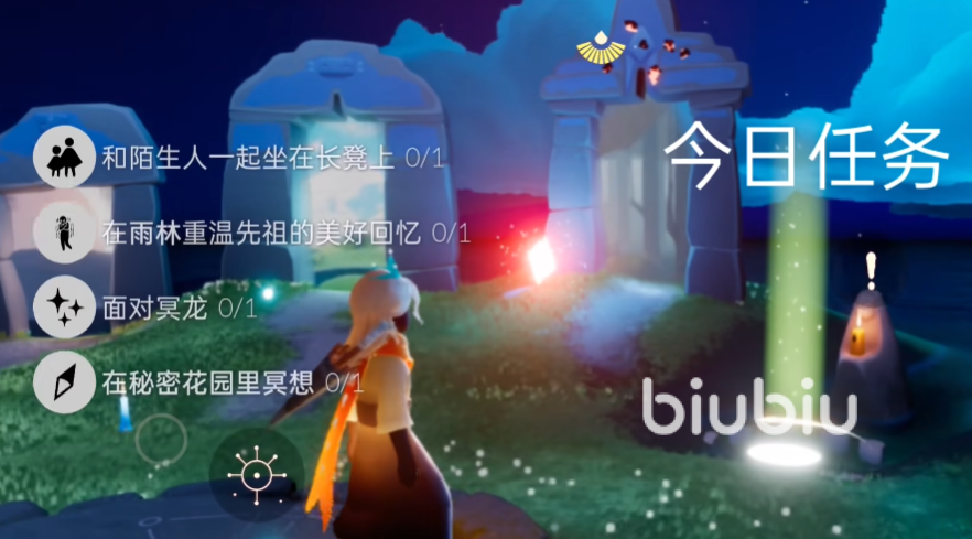光遇每日都會有四個任務,第一個任務是和沒有加好友的陌生人坐在長凳上即可,第二個任務是回憶先祖記憶,先祖位置在雨林第一道鐵門開門后的四方院左側位置,玩家只要點火重溫先祖回憶即可。