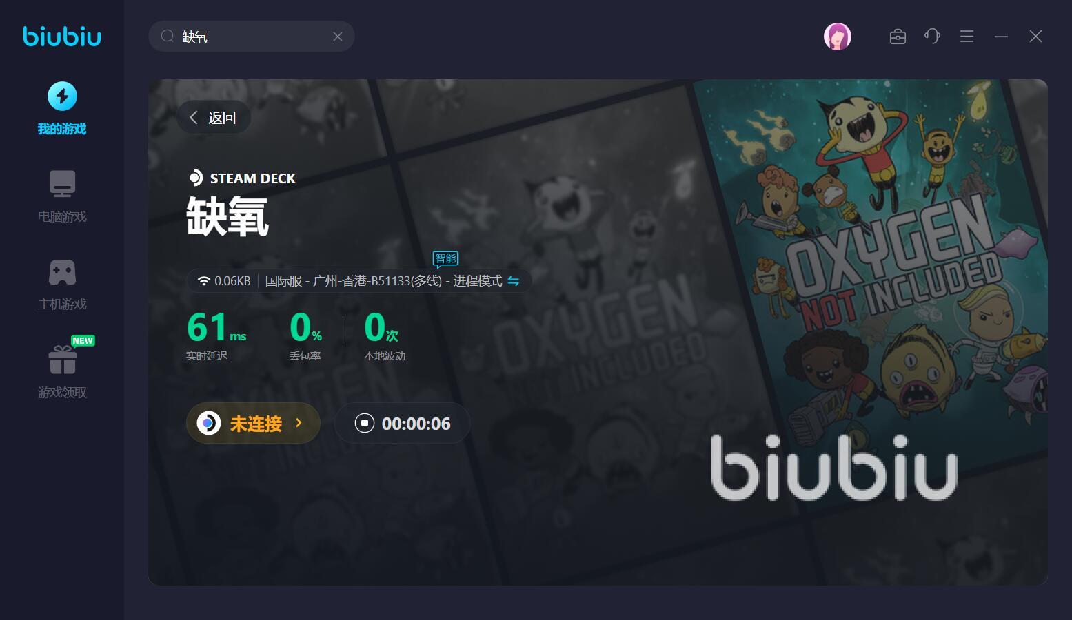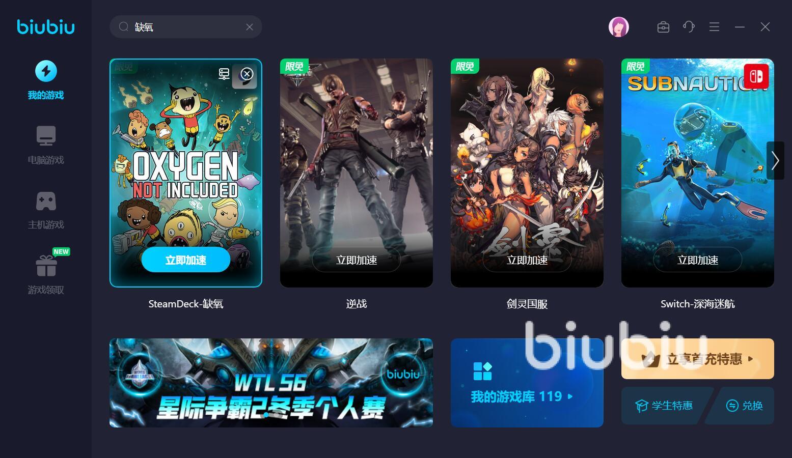 一局游戲可以持續(xù)很長時(shí)間,但隨著時(shí)長的增加,對內(nèi)存的占用也會變多,要是你的硬件太老,那么很容易出現(xiàn)閃退的問題,導(dǎo)致無法正常運(yùn)行游戲。要是硬件沒問題的話,那么可能就是網(wǎng)絡(luò)不好了。缺氧內(nèi)的存檔會自動存儲并上傳到云端,要是網(wǎng)絡(luò)不好的話,不僅無法讀取,啟動游戲時(shí)還容易閃退,這時(shí),可以使用biubiu加速器去處理。為了回饋廣大用戶,平臺下發(fā)了很多兌換碼,大家在軟件內(nèi)輸入【biubiu不卡頓】后,就能領(lǐng)取3天免費(fèi)使用時(shí)長,如果你是新用戶的話,注冊登錄后,直接就能領(lǐng)取24小時(shí)免費(fèi)使用時(shí)長。