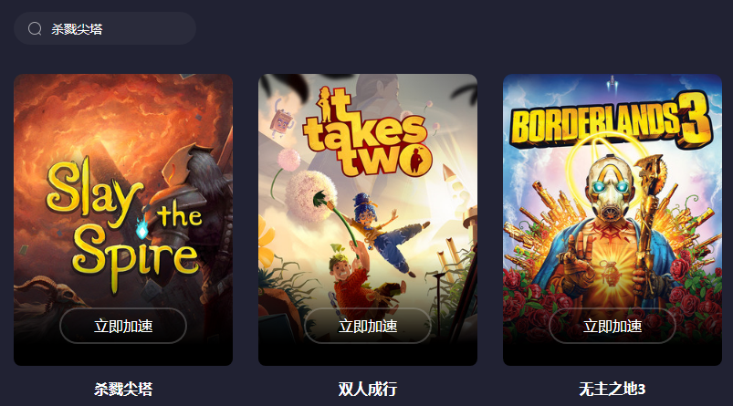 并且該加速工具能幫助大家去加速的游戲種類非常的多,除了有主機游戲以外,大量的PC游戲也是能直接去搜索找到,就比如殺戮尖塔,玩家通過首頁去搜索就能去為它開啟加速,真正做到了即點即用,上手的門檻也是比較的低,即使是小白也能輕松掌握它。