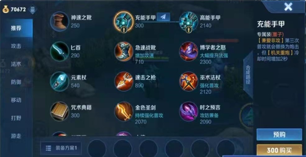 墨子的專精裝備是高能手甲,通過充能手甲升級而來,最后的售價(jià)是2140點(diǎn)金幣,這個(gè)價(jià)格和一般的法術(shù)輸出大件差不多。屬性是可以提升百分之三十的攻擊速度,還有一百二十點(diǎn)法術(shù)攻擊。從屬性上來看,有些不倫不類,之前很少有法術(shù)攻擊裝備增加攻擊速度的,但是用于墨子身上就可以理解了,因?yàn)槠展ヒ彩悄虞敵鲅h(huán)中不可缺少的一項(xiàng)。