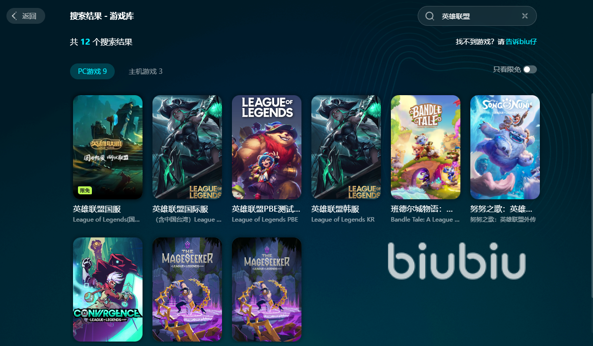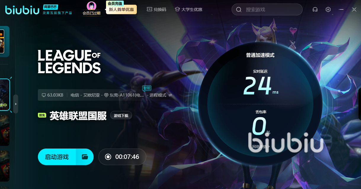 用比較熱門的英雄聯(lián)盟舉例子,我們可以看到這個游戲在biubiu這里是享受很多的加速服務(wù)的,國際服,國服等等都有,大家想玩哪個,就選擇哪個,切記不要點錯了,不然加速效果就大打折扣了。