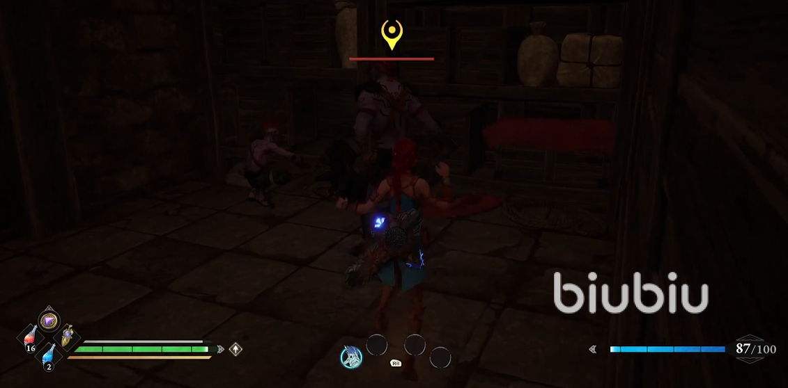 接下來,戰(zhàn)斧幫寨當(dāng)中還會出現(xiàn)敵人的盜賊士兵,攻擊速度和移動能力都較高,可以對玩家造成有效的傷害,不過各位可以依靠主角的近距離優(yōu)勢去壓制住對手,釋放多輪技能就可以輕松的將其打敗。