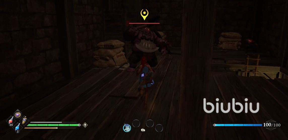 不過,遇到體型較大的敵人時是沒有辦法一招制敵的,小編推薦給為使用遠距離放風(fēng)箏的戰(zhàn)術(shù)進行攻擊,當(dāng)敵人倒地的情況下,在控制角色釋放技能進行反擊,基本上兩個回合下來就可以將這一類敵人給解決掉。隨后,大家繼續(xù)朝著房間的樓梯朝下方移動,就可以順利的來到戰(zhàn)斧幫寨中。