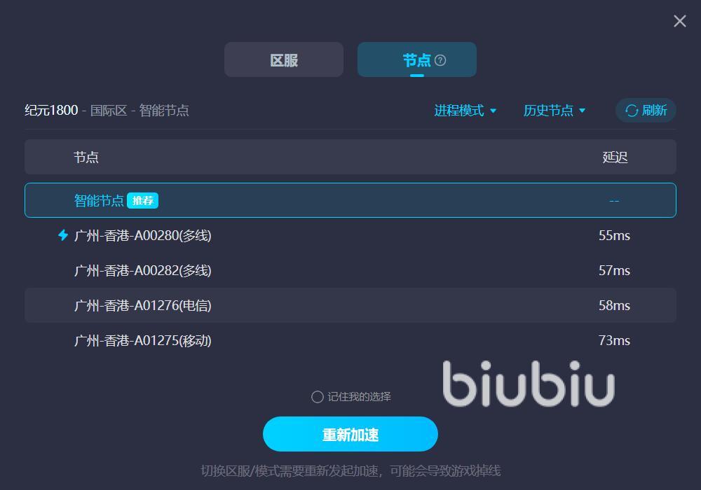 以上就是紀(jì)元1800加速器下載安裝,游玩這類模擬經(jīng)營游戲的時候,無需完成什么復(fù)雜的操作,但對玩家的運營能力要求很高,幾個不起眼的操作可能就會使自己輸?shù)魧郑瞧陂g網(wǎng)絡(luò)波動太大,還會導(dǎo)致數(shù)據(jù)同步不及時,導(dǎo)致無法做出準(zhǔn)確的判斷,進(jìn)而敗給自己的對手。有了biubiu加速器的輔助后,大家就能安心地享受游戲本身了。