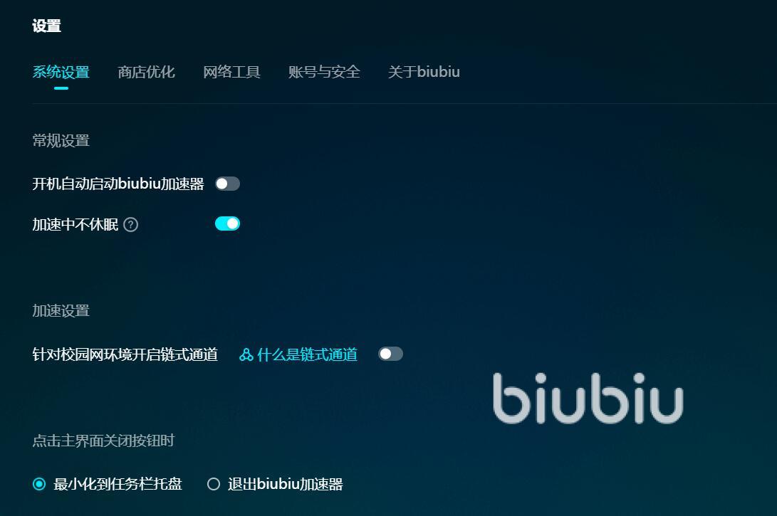 在軟件的設(shè)置區(qū)域內(nèi),平臺(tái)打造了很多實(shí)用的功能,經(jīng)常在主機(jī)上打游戲的朋友,可以將加速中不休眠的選項(xiàng)開啟,這樣在游玩的時(shí)候,就不用擔(dān)心加速突然中斷了,自己就能全身心地投入到主機(jī)上面。此外,針對(duì)在校上學(xué)的用戶,應(yīng)用內(nèi)還安排了一個(gè)鏈?zhǔn)酵ǖ溃ㄟ^新技術(shù)來(lái)解決校園網(wǎng)不穩(wěn)的問題,讓大家能收獲可靠的使用體驗(yàn)。