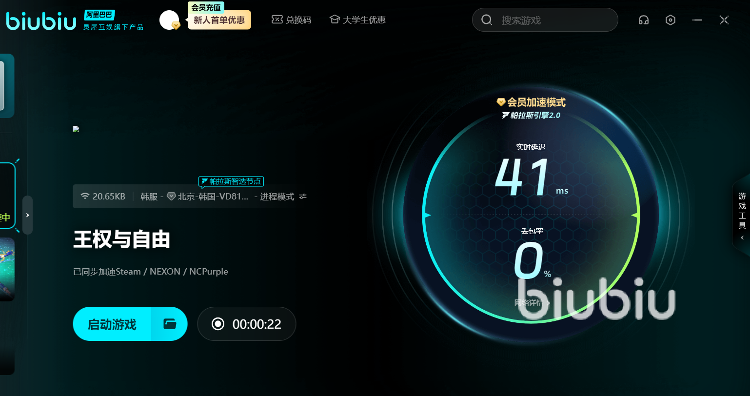 《王權(quán)與自由》是一款規(guī)模宏大的大型多人在線(MMO)端游,憑借其廣闊的游戲世界和多元化的玩法深受玩家喜愛。因此網(wǎng)絡(luò)不穩(wěn)定是導(dǎo)致《王權(quán)與自由》國際服游戲崩潰的關(guān)鍵因素之一。為此,推薦使用“biubiu加速器”來優(yōu)化網(wǎng)絡(luò)環(huán)境。該加速器憑借卓越的網(wǎng)絡(luò)優(yōu)化技術(shù),能夠智能篩選最優(yōu)網(wǎng)絡(luò)路徑,顯著降低延遲,同時減少丟包率,從而確保游戲的流暢。