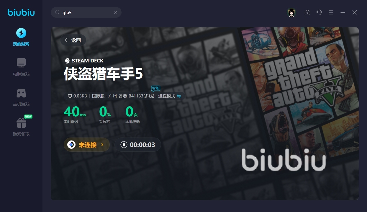 好了,以上就是gta5閃退進入不了游戲怎么辦的全部介紹,大家在進行游戲體驗的時候應(yīng)是發(fā)現(xiàn)了,如果自身的網(wǎng)絡(luò)出現(xiàn)了延遲很高,或者是經(jīng)常發(fā)生掉線肯定是不行的,因此這個時候去打開biubiu來運行就能為大家進一步的穩(wěn)定自身游戲,所以大家喜歡就抓緊去點擊上面的鏈接來安裝吧。