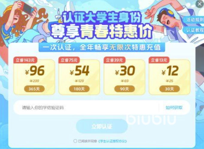 如果你是當(dāng)前在校大學(xué)生,在充值的時(shí)候可以去認(rèn)證身份享受青春特惠價(jià),登錄學(xué)信網(wǎng)獲取驗(yàn)證碼,這樣就可以享受不同的折扣優(yōu)惠,獲取方式非常簡(jiǎn)單,進(jìn)入官網(wǎng)鏈接跳轉(zhuǎn)界面登錄院校信息即可收取,若是沒(méi)有驗(yàn)證碼的用戶,完成人臉是識(shí)別認(rèn)證并提交學(xué)校信息即可申請(qǐng),一次認(rèn)證就可以暢享全年無(wú)限次特惠充值。