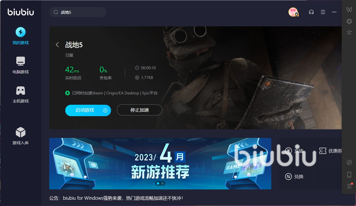 Biubiu秉承著絕不浪費(fèi)小伙伴們一秒時(shí)間的宗旨,主打的游戲加速就是即用即停,快速解決游戲戰(zhàn)斗,當(dāng)小伙伴們進(jìn)行游戲時(shí)間時(shí),只需要在biubiu中我的游戲之中點(diǎn)擊雪地奔馳,然后啟動(dòng)游戲就開(kāi)始給游戲同步加速了,停止游戲時(shí)點(diǎn)擊biubiu雪地奔馳游戲下的停止就可以迅速停止biubiu的運(yùn)行,也不會(huì)多占用小伙伴們自己的游戲運(yùn)行內(nèi)存。
