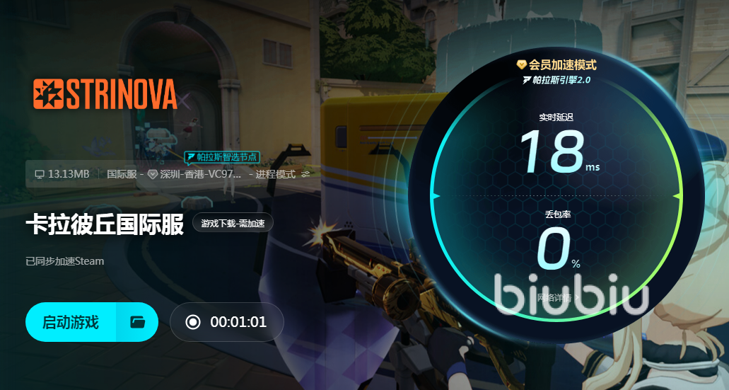 現(xiàn)在biubiu里就能搜索到Strinova國(guó)際服,一鍵啟動(dòng)來(lái)加速,瞬間享受非一般的網(wǎng)速,游戲體驗(yàn)都提升好幾個(gè)檔次。所有新注冊(cè)biubiu的用戶(hù)都能享受到24小時(shí)免費(fèi)加速的福利,免費(fèi)體驗(yàn)期間平臺(tái)里的所有游戲都是任意加速?zèng)]有品類(lèi)限制的。大家如果對(duì)效果感到滿(mǎn)意的話(huà)還可以充值正式會(huì)員,新用戶(hù)首充也很實(shí)惠哦。