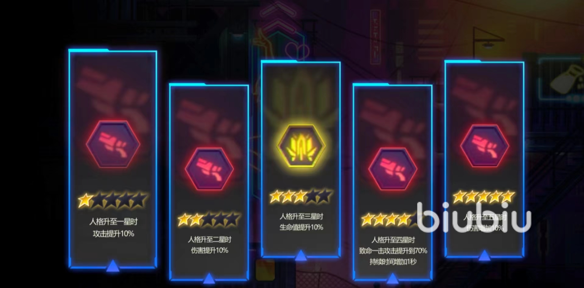 最后古尼沙解鎖天賦后,除了攻擊力和傷害加成外,還有10%的生命值加成。古尼沙作為一個脆皮,生命值的百分比加成并不高。且古尼沙自帶無限攻擊距離和鎖敵的機制,可以通過站位來獲得不錯的輸出環(huán)境。即使輸出環(huán)境不好也需要其他人格保護,10%的生命值加成依然作用不大,不過聊勝于無,只是生命值加成換成其他屬性的加成就更好了。