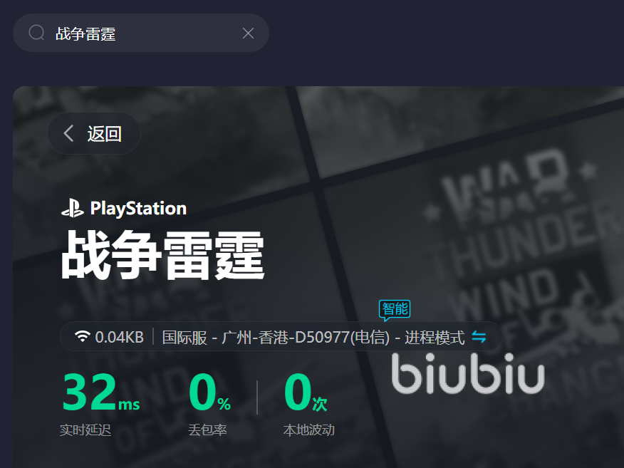 戰(zhàn)爭(zhēng)雷霆是一款讓玩家駕駛坦克甚至轟炸機(jī),在游戲服務(wù)器內(nèi)與其他玩家爭(zhēng)奪據(jù)點(diǎn),通過(guò)多人合作攻占敵方基地的游戲。以第二次世界大戰(zhàn)和反恐戰(zhàn)爭(zhēng)為主題,這款游戲非常有特色。然而,由于服務(wù)器位于國(guó)外,許多玩家反映游戲體驗(yàn)不夠流暢。網(wǎng)絡(luò)問(wèn)題常常會(huì)妨礙玩家發(fā)揮真正實(shí)力,在戰(zhàn)爭(zhēng)雷霆中屢次死亡的情況下,玩家只能束手無(wú)策地在備戰(zhàn)席中觀看其他玩家的戰(zhàn)斗。使用biubiu加速器作為主要的戰(zhàn)爭(zhēng)雷霆加速器,能夠根本解決延遲、卡頓、丟包等問(wèn)題。