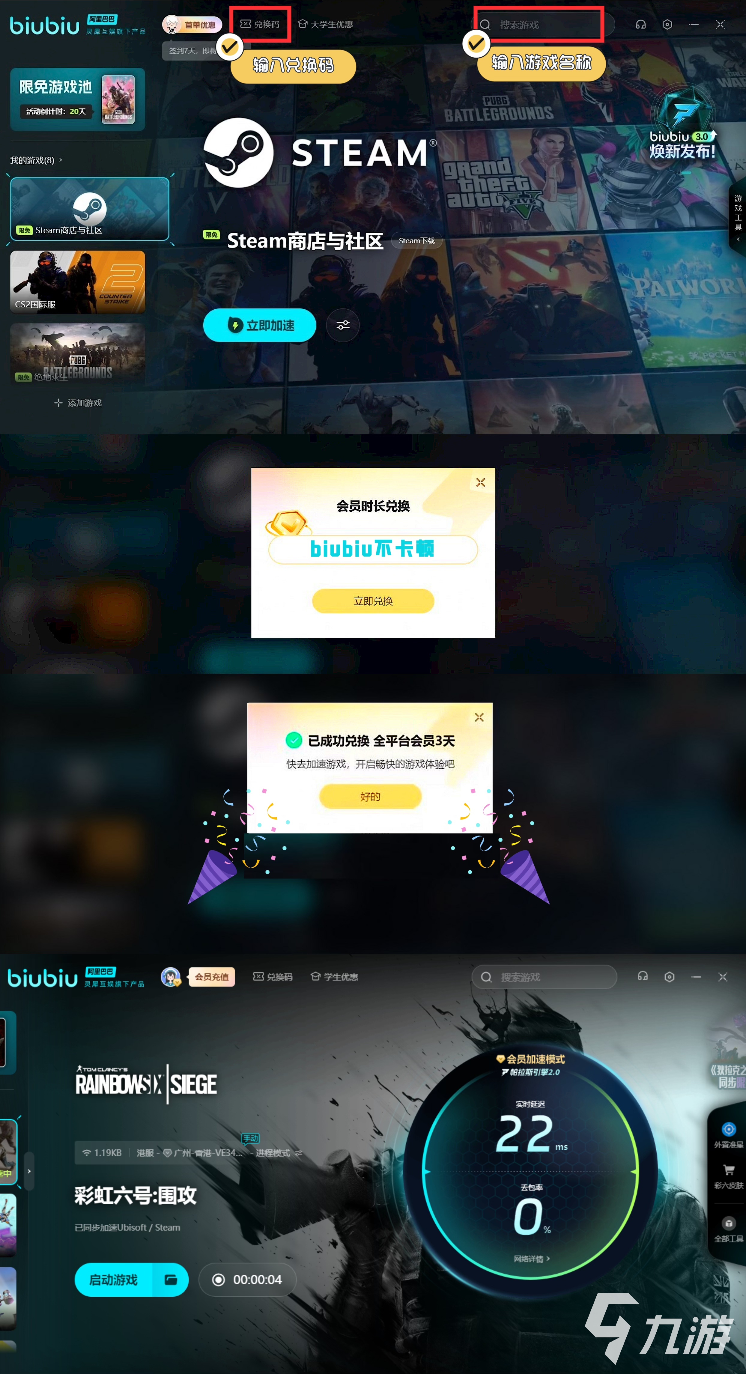 戰(zhàn)場中我們將扮演警匪雙方,并展開殊死搏斗。若是出現(xiàn)卡頓,自然會影響我方的勝利。用上biubiu后,就能流暢射擊并幫助隊友迎接勝利。新用戶的話可領取3小時的免費加速,另外新老用戶通過【biubiu不卡頓】,即可額外獲得三天免費加速。