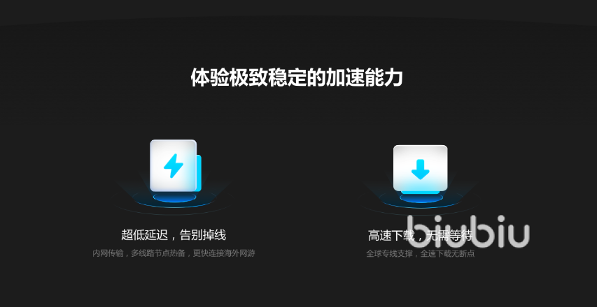 biubiu現(xiàn)在對(duì)于新用戶推出了首次下載即送24小時(shí)的會(huì)員免費(fèi)加速活動(dòng),以及不定期的還會(huì)開展很多游戲的限免活動(dòng),想要了解這部分內(nèi)容的玩家可以持續(xù)關(guān)注biubiu官網(wǎng)的相關(guān)資訊哦。biubiu加速器獨(dú)有的電競級(jí)別專線節(jié)點(diǎn),還能讓玩家輕松體驗(yàn)到游戲加速效果,實(shí)在是非常貼心。
