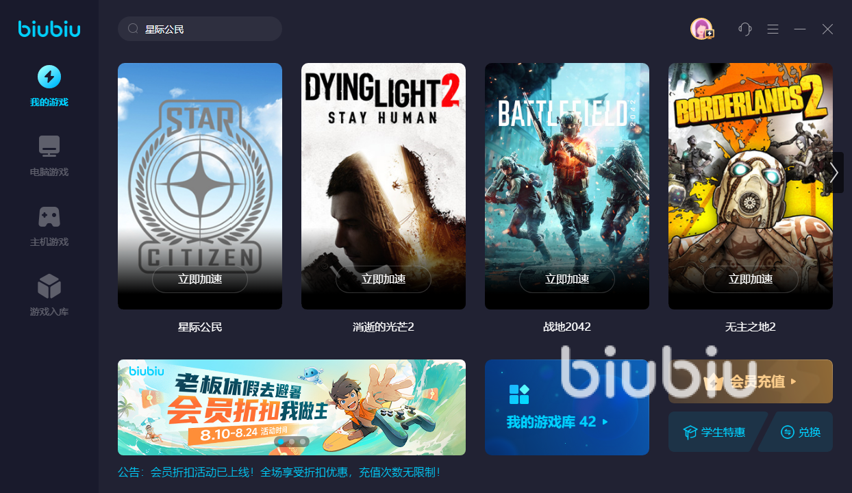 biubiu加速器強(qiáng)就強(qiáng)在,不僅能加速那些在平臺(tái)里游玩的游戲,還可以直接加速游戲本體,并且大家如果之前沒(méi)有用過(guò)的話(huà),上線(xiàn)以后還可以直接獲取到24小時(shí)的免費(fèi)加速時(shí)長(zhǎng),很多擔(dān)心加速體驗(yàn)不好還白白花錢(qián)的朋友這次就可以放心了,先體驗(yàn)再付費(fèi),游戲快樂(lè)感直接飆升。