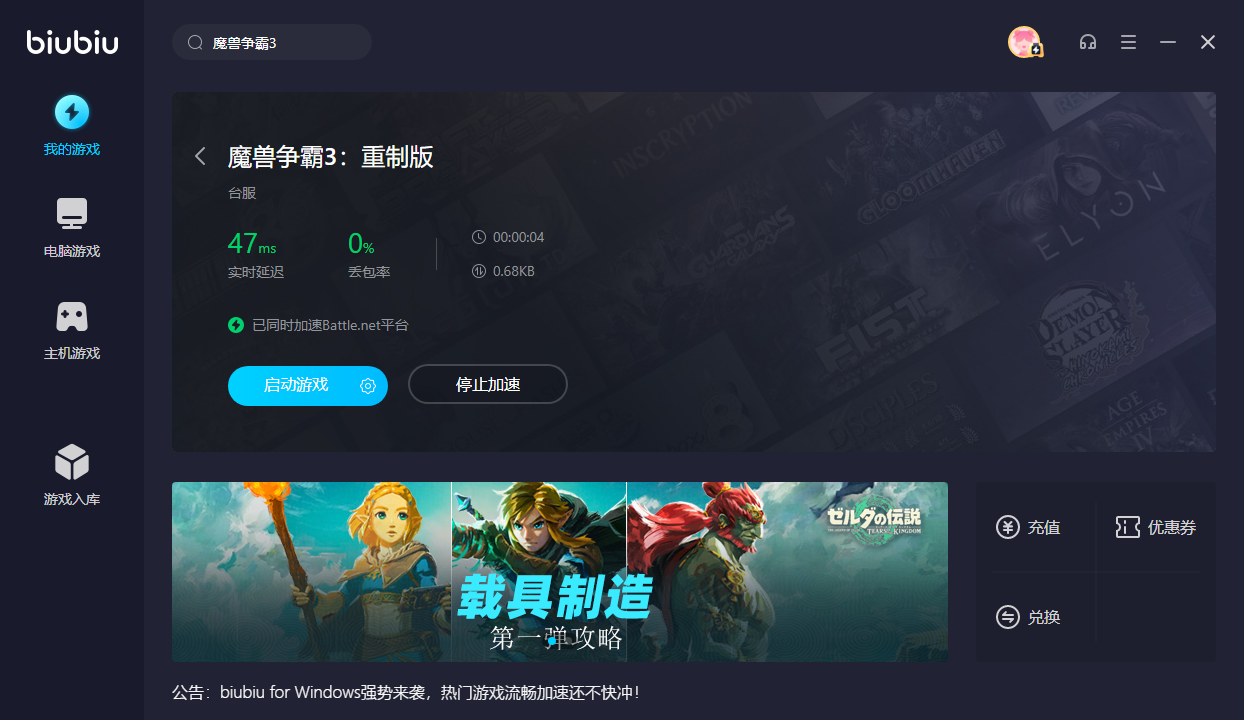 融入了征戰(zhàn),建造和最對(duì)的三大元素對(duì)于新手的玩家來說是非常不錯(cuò)的體驗(yàn),豐富內(nèi)容前提讓游戲的體積也隨之增大,所以對(duì)于電腦的設(shè)備和網(wǎng)絡(luò)就會(huì)有一定的要求,如果想要合理的解決卡頓,掉線以及延遲的干擾,最好的方式就是下載今天介紹的這款biubiu加速器。