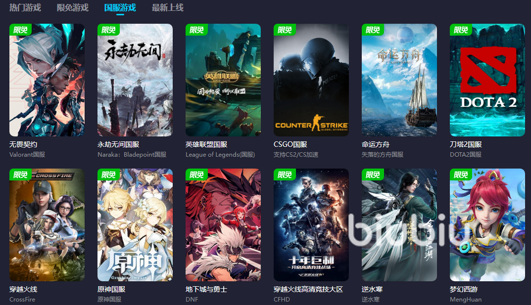 當(dāng)然了,加速的節(jié)點(diǎn)讓大家了解之后,接下來(lái)就可以關(guān)注一下平臺(tái)所支持的游戲類(lèi)型是否豐富了。目前在游戲庫(kù)當(dāng)中,大家可以輕松獲取到國(guó)服、熱門(mén)、限免、最新等不同的游戲類(lèi)型,每一個(gè)分類(lèi)之下都可以找到玩家感興趣的游戲題材。如果各位剛好是新用戶的話,還可以參與到新人注冊(cè)享24小時(shí)免費(fèi)的活動(dòng)當(dāng)中去,此期間任何一款游戲都可以免費(fèi)加速。