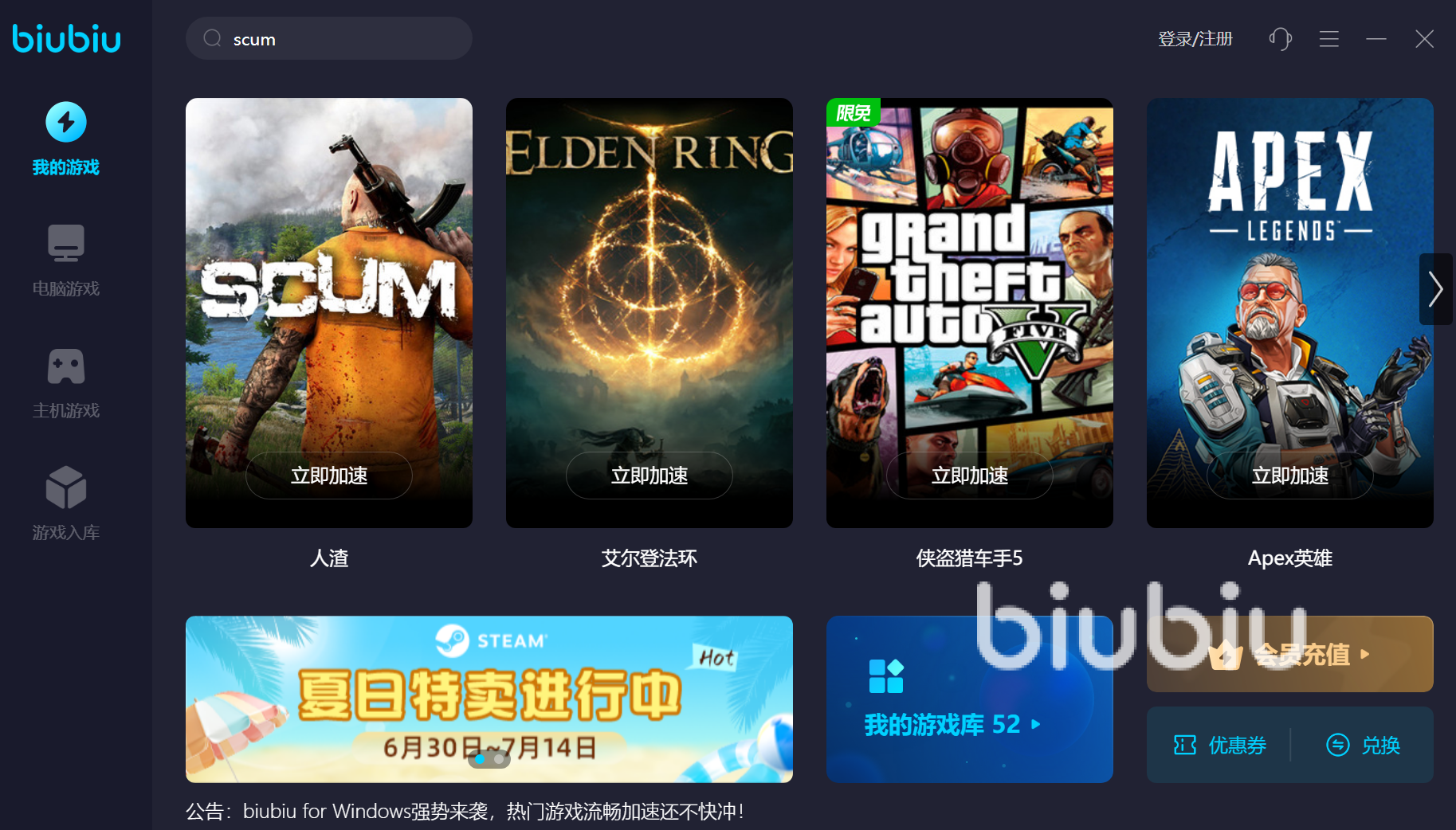 新用戶登錄就有72小時(shí)會(huì)員vip免費(fèi)體驗(yàn),這個(gè)福利的期間你可以通過加速器給任意的游戲加速,只要是游戲庫(kù)可以搜索到的。豐富的游戲庫(kù)中收錄了國(guó)內(nèi)外超多的熱門游戲,對(duì)于一些玩家喜歡的小眾游戲這里也可以找到,可以說(shuō)是非常的強(qiáng)大了。