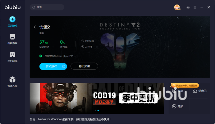以上這些便是小編為您介紹的關(guān)于游玩命運(yùn)2這款游戲的加速選擇和詳細(xì)的實(shí)際延遲狀況。目前biubiu正在為新用戶進(jìn)行各類的福利活動(dòng)。大家可以趁著此次機(jī)會(huì)來下載一下biubiu加速器,從而體會(huì)到完全無(wú)延遲無(wú)卡頓的命運(yùn)2游戲之旅。