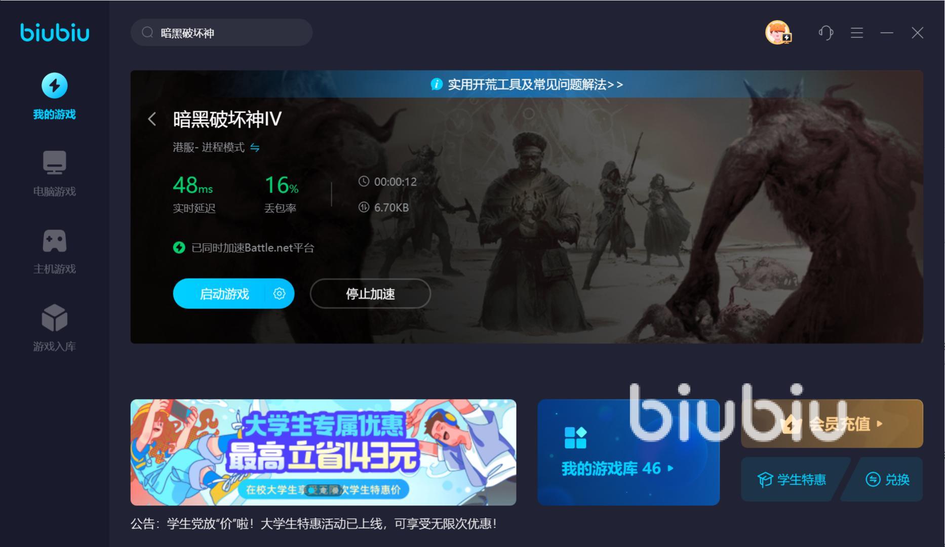 很多游戲現(xiàn)在都是要求你的硬件和網(wǎng)絡(luò)相匹配的,就拿暴雪旗下最新推出的暗黑系列以及逼真感極強(qiáng)的cod系列來說,能運(yùn)行的前提是30和40系顯卡,可重要的還是你的網(wǎng)絡(luò)環(huán)境支不支持運(yùn)行游戲,又或是從Steam下載的游戲都像是增添了一層“屏障”,原先正常用網(wǎng)下載速度能達(dá)到200mb/s的話,但受到海外網(wǎng)絡(luò)限制后可能只有50mb/s不到,更別說再去支持這些大型海外網(wǎng)游了,而要是想不受限制的話可以用biubiu加速器。