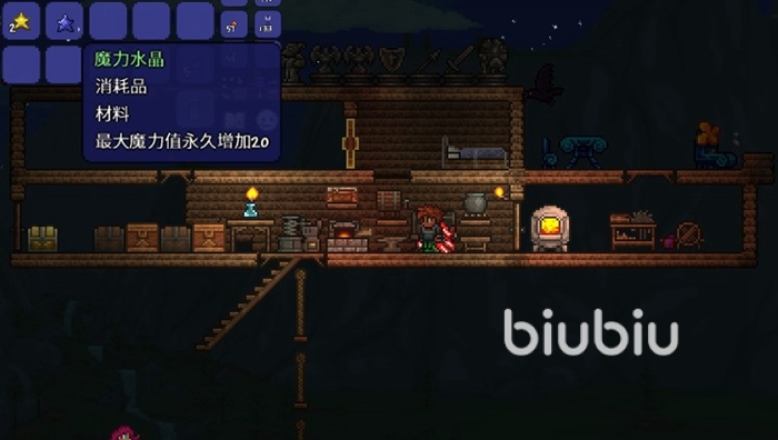 墜落之星想必大家都十分熟悉了,在開(kāi)始游戲之后的夜晚有時(shí)我們就可以發(fā)現(xiàn)地表上掉落的這種物品。墜落之星會(huì)在游戲內(nèi)時(shí)間的4點(diǎn)半消失,所以需要盡快拾取。而在游戲初期我們基本上都是使用墜落之星進(jìn)行魔力水晶的合成。使用魔力水晶可以提升我們的最大魔力值。而將墜落之星魚(yú)玻璃瓶放在一起合成出的星星瓶,則可以在裝備之后為玩家提供魔力回復(fù)的效果。