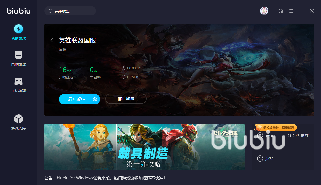 召喚師峽谷中有上百位英雄各位身懷絕技,各有強(qiáng)勢的英雄幾乎是讓每一場戰(zhàn)斗都變得獨(dú)一無二,在這里從不是單打獨(dú)斗的角斗場,而是要和隊友相互配合,發(fā)貨出各自位置最大的作用來,尤其是周末閑暇之余邀請三五好友一起開黑別說有多快樂,尤其是在一起組隊開黑誰沒人想“拖后腿”,但卻自己的網(wǎng)絡(luò)無奈不爭氣,不是加載時最慢就是打團(tuán)時突然掉線,而為了避免這種情況發(fā)生來影響你的隊友,玩之前習(xí)慣性地開啟biubiu加速器就能很好規(guī)避。