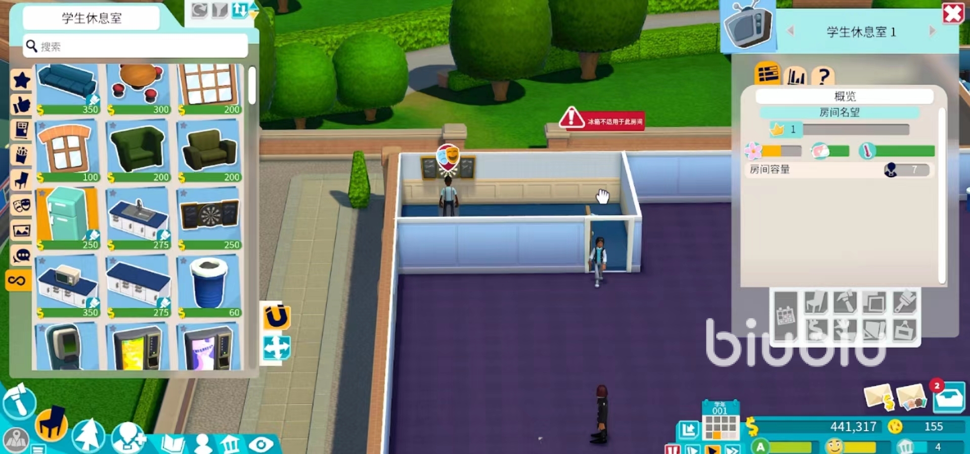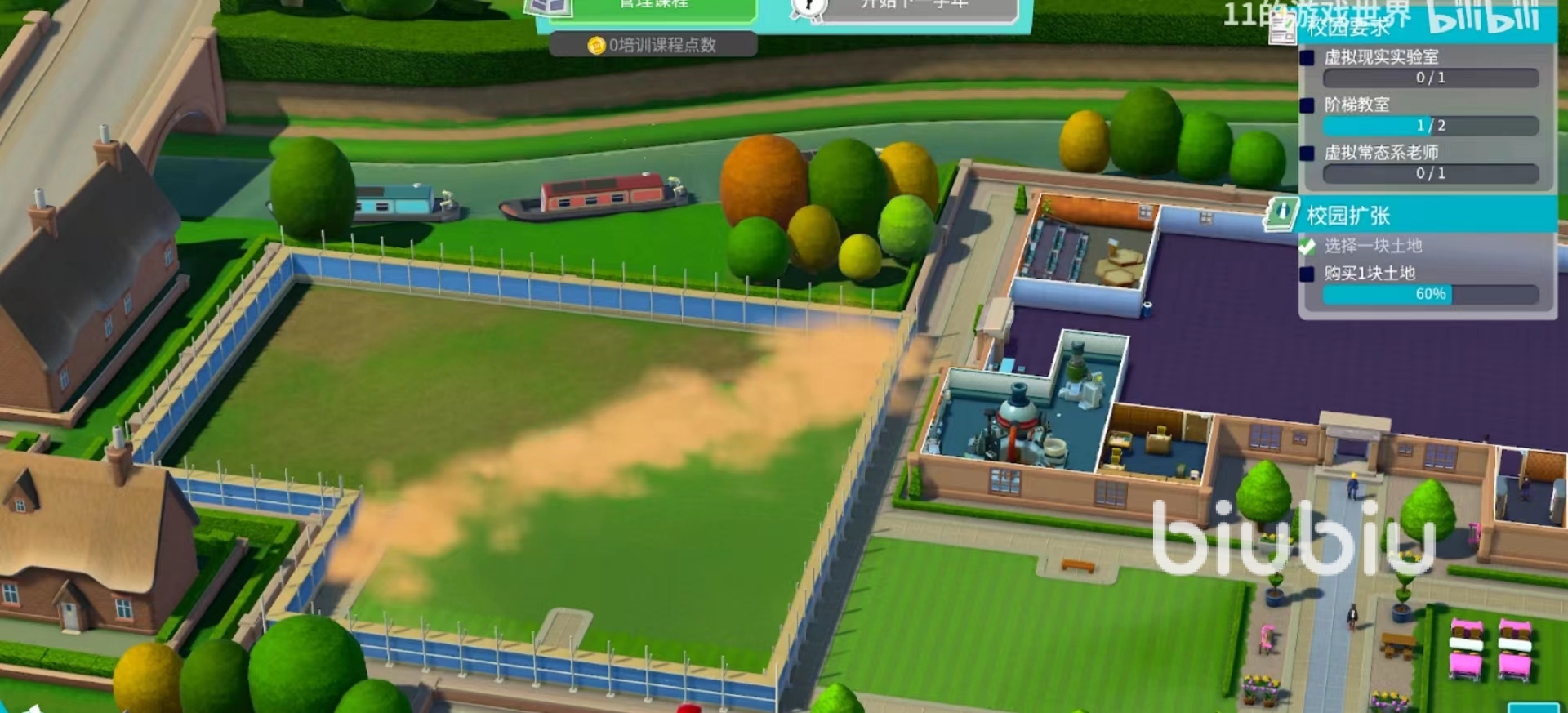最后需要玩家做的就是擴(kuò)大學(xué)校面積,此時有購買空地和購買附帶兩個建筑,購買附帶建筑可以把周圍的土地和建筑物一起購入,而第一次購買附帶建筑的話,就可以把校園右方的建筑改造成學(xué)生宿舍,具體怎么選取決于玩家的資金狀況。