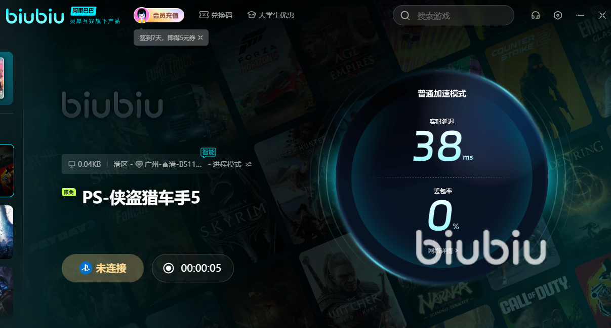 大家想要玩好這個(gè)游戲,肯定是需要有良好的操作才可以,但是只有網(wǎng)絡(luò)好了,延時(shí)低了,才能讓大家更好的操作出來(lái)。好在biubiu在降低延時(shí)這方面表現(xiàn)是很不錯(cuò)的,整個(gè)實(shí)時(shí)延時(shí)只在38ms附近跳動(dòng),網(wǎng)絡(luò)非常的穩(wěn)定,讓大家可以放心的進(jìn)行各種任務(wù),玩到更大的樂趣了。