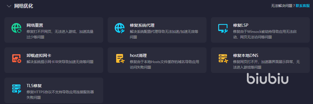 同時(shí)它還有一些小工具來(lái)幫助大家優(yōu)化游戲環(huán)境。有時(shí)候玩游戲卡并不是因?yàn)榫W(wǎng)速不行,而是電腦運(yùn)行了太多程序或者是緩存不足了。大家就可以打開(kāi)biubiu工具箱,選擇host清理來(lái)清除本地緩存,給游戲騰出更多運(yùn)行空間。