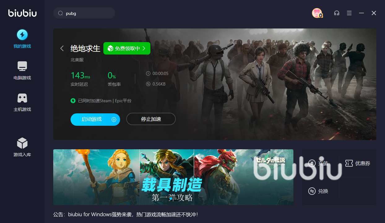 在使用期間,作為Biubiu平臺(tái)的新用戶,您可以享受24小時(shí)的加速限免。而且,Biubiu平臺(tái)還針對(duì)部分主機(jī)和PC游戲提供限時(shí)免費(fèi)的加速福利。玩家只需直接添加相應(yīng)的游戲即可開(kāi)啟加速。即便不是會(huì)員也可以享受這些福利。小編今天還為大家?guī)?lái)一些額外的福利,在首頁(yè)輸入【biubiu不卡頓】,即可兌換到3天的加速機(jī)會(huì)。這一點(diǎn)很多小平臺(tái)并不具備,但Biubiu卻能為玩家提供這樣的服務(wù)。