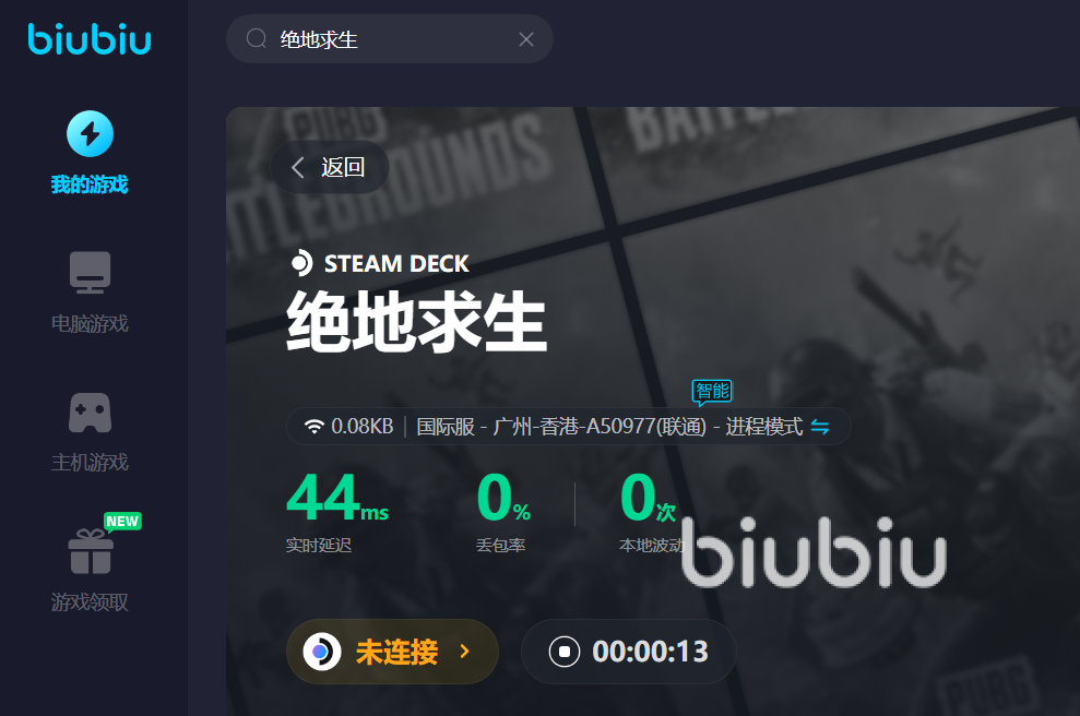 當(dāng)然對(duì)于biubiu加速器可以加速的電腦端游游戲數(shù)量是非常龐大的,基本上大家經(jīng)常玩的游戲都可以使用biubiu加速器加速。當(dāng)然小編玩的比較多的是絕地求生這款游戲。當(dāng)然在游戲開始前也會(huì)使用biubiu加速器,一鍵開啟網(wǎng)絡(luò)的加速服務(wù),之后的游戲體驗(yàn)會(huì)更加的流暢,減少閃退的現(xiàn)象。當(dāng)然除了這款游戲,對(duì)于其他游戲大家也可以試試,它的加速服務(wù)是非常完善的 。