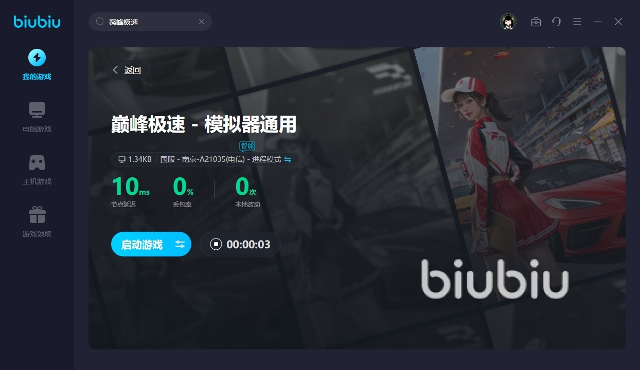此外,biubiu還擁有一鍵加速的功能,對于一些初次使用還不是很熟悉的朋友而言就很友好了,各位只需去輸入游戲名就能找到作品,也可把喜歡的游戲添加到庫中,這樣下次使用的時(shí)候只需去點(diǎn)擊加速即可,大大方便了玩家的游戲加速。