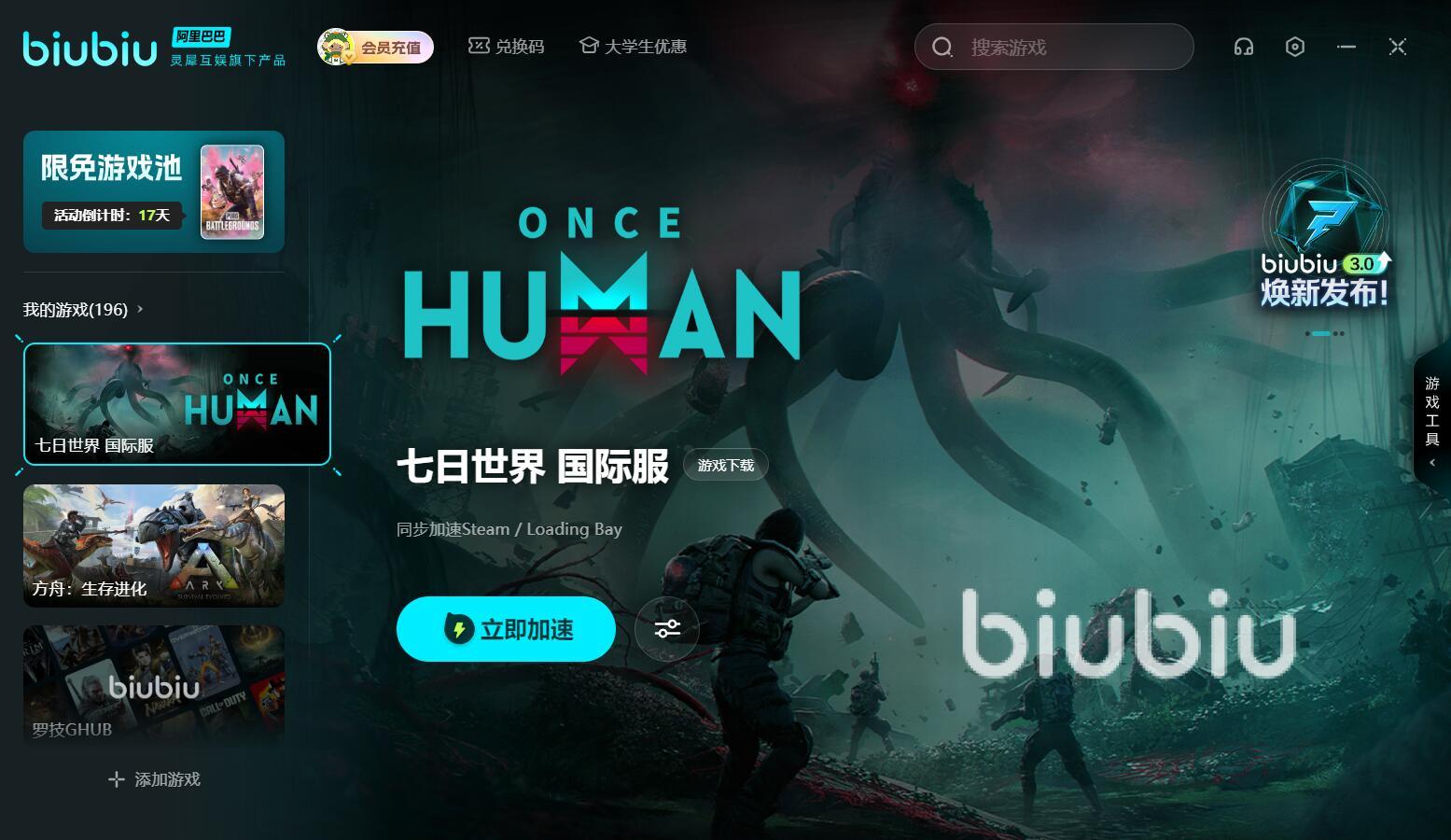 游戲全程都需要聯(lián)網(wǎng),特別是在組隊(duì)與大BOSS進(jìn)行交戰(zhàn)時(shí),網(wǎng)絡(luò)一定要保持穩(wěn)定,否則突然的波動(dòng)就會(huì)使你做出錯(cuò)誤的操作,進(jìn)而影響自己的發(fā)揮,所以在開始游戲前,大家不妨先用biubiu加速器去處理一下網(wǎng)絡(luò)。為了回饋大家,平臺(tái)上線了多個(gè)活動(dòng),新用戶完成注冊(cè)后,就能領(lǐng)到24小時(shí)的加速時(shí)長(zhǎng),此外,所有用戶在輸入兌換碼【biubiu不卡頓】之后,都能領(lǐng)到3天的加速時(shí)長(zhǎng)。