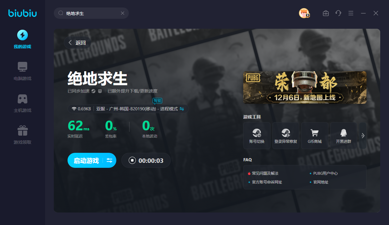 由于絕地求生目前并未上線國(guó)服,所以想要注冊(cè)成功帳號(hào),并登錄游戲的話,還需要biubiu加速器的網(wǎng)絡(luò)加持,這樣就能進(jìn)入相關(guān)服務(wù)器,并與外國(guó)的網(wǎng)友們一同在刺激的戰(zhàn)場(chǎng)中生存戰(zhàn)斗,并且該游戲里的人物很多,并且每個(gè)人都是實(shí)時(shí)在線的玩家,所以對(duì)于網(wǎng)絡(luò)的穩(wěn)定性要求非常高還好,biubiu能夠輕松降低網(wǎng)絡(luò)延遲讓你即便同時(shí)跟多個(gè)人在線競(jìng)技也不會(huì)卡頓,目前新用戶注冊(cè)還可以享受24小時(shí)的免費(fèi)加速,當(dāng)然如果你希望多玩幾把吃雞游戲的話,那可以繼續(xù)輸入【biubiu不卡頓】即可領(lǐng)取三天免費(fèi)加速,值得注意的是,新老用戶均可使用一次。