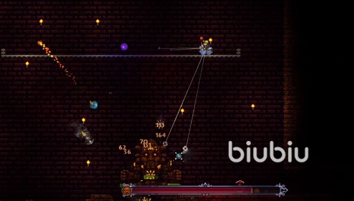 游戲的地圖是橫板的,那么如果我們將游戲中的地圖等分成三段,我們?cè)诘貓D的左側(cè)以及右側(cè)1/3進(jìn)行探索時(shí)偶爾可以看到火星探測(cè)器??吹交鹦翘綔y(cè)器之后我們只需要對(duì)其進(jìn)行攻擊,那么火星探測(cè)器就會(huì)被激活立即逃離。放任火星探測(cè)器逃離出我們的視野范圍之后,火星人入侵這個(gè)事件就能夠被我們觸發(fā)召喚了。另外,我們還必須確保自己的血量達(dá)到200點(diǎn)以上。