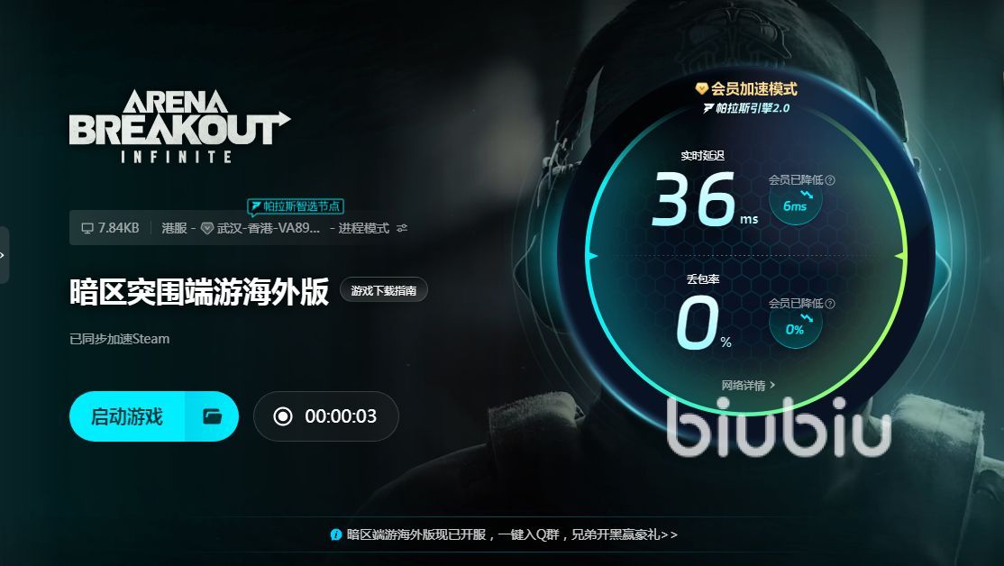 秉承著不浪費大家一秒時間的宗旨,主打即用即停的模式,幫助玩家提供穩(wěn)定的網(wǎng)絡(luò)環(huán)境,從而也能快速的解決游戲戰(zhàn)斗,運行的過程當(dāng)中不會影響到其他的 軟件,直接在biubiu界面編輯好暗區(qū)突圍游戲名稱了之后,就可以檢索到相應(yīng)的版本,玩家根據(jù)自己所在的區(qū)服選擇加速就好,退出游戲的時候記得停止加速就好。