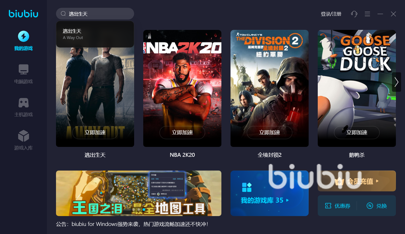 第二,注冊個人賬號。擁有個人賬號,大家才能使用biubiu加速器,這樣操作更簡單,大家不必每次搜索游戲,再設置加速。