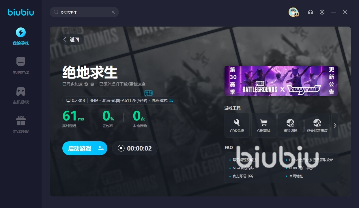 最主要的是,biubiu內(nèi)的游戲種類也是很全面的,包括當(dāng)下熱門游戲,這里都是可以找到的,操作也是很便捷,下載之后玩家只需要在首頁搜索絕地求生即可找到相應(yīng)的游戲,然后一鍵開啟加速就可以了。在詳情界面還能更換不同的加速節(jié)點(diǎn),如果覺得當(dāng)前節(jié)點(diǎn)延遲較高,直接更換即可,海量節(jié)點(diǎn)自由選擇。如果對(duì)于平臺(tái)不了解,大家也不需要手動(dòng)切換,平臺(tái)會(huì)為我們提供智能節(jié)點(diǎn),可以根據(jù)當(dāng)前的網(wǎng)速來智能切換,能夠確保游戲體驗(yàn)過程中足夠的穩(wěn)定,更好的體驗(yàn)游戲。