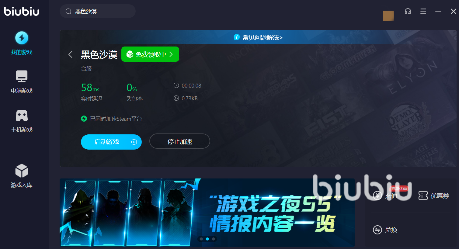 有關(guān)玩黑色沙漠要加速器嗎的問題,小編已經(jīng)為大家做出了分享,如果你想在玩游戲的時(shí)候體驗(yàn)流暢的網(wǎng)絡(luò),就千萬不要錯(cuò)過biubiu加速器,趕快去軟件上面看看其他的優(yōu)秀功能吧。