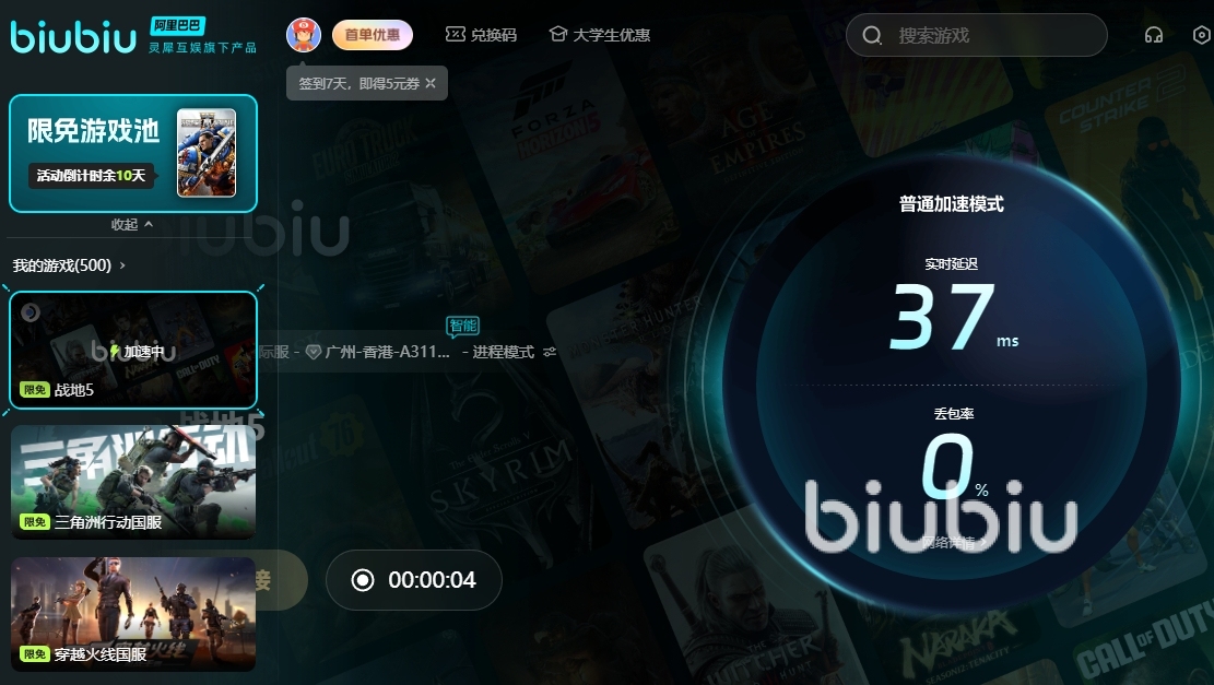 現(xiàn)在去使用它的話,作為平臺(tái)的新用戶是能得到24h免費(fèi)加速的,后續(xù)大家也可考慮去輸入兌換碼【biubiu不卡頓】領(lǐng)取72h加速時(shí)長,此兌換碼適用于所有的平臺(tái)用戶,而作為新用戶而言,等于是有著96h的加速機(jī)會(huì),這點(diǎn)是當(dāng)下很多軟件都無法給到的。