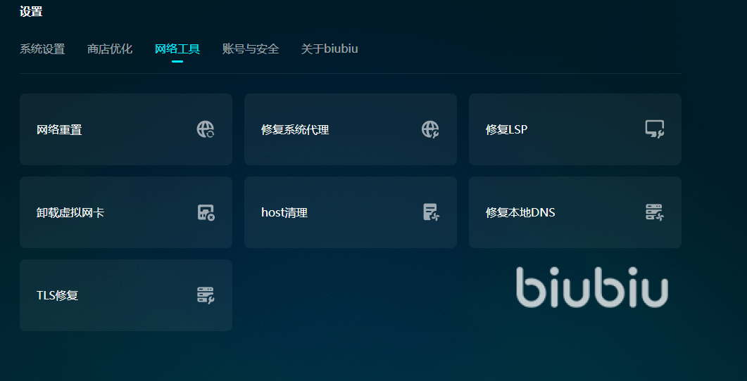 除了直接加速游戲以外,大家還能使用工具修復一下電腦網(wǎng)卡,有時候隱形的網(wǎng)卡故障也會影響游戲體驗,嚴重的話還會導致游戲無法登錄或者是加速異常。面對稀奇古怪的網(wǎng)卡故障問題大家束手無策,這時候biubiu工具箱就顯出它的大作用來了,針對不同的問題都有對應的修復工具,使用起來很方便,修復過程也很迅速,等到系統(tǒng)提示修復完畢以后大家再重啟電腦,就會發(fā)現(xiàn)電腦的網(wǎng)卡已經(jīng)煥然一新了。