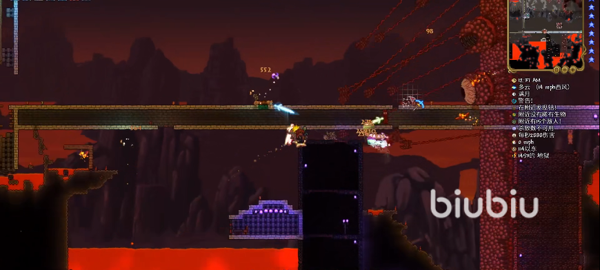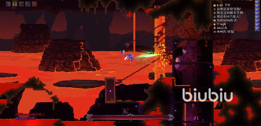修建好地獄走廊后我們需要前往深海海底獲得巫毒娃娃道具,這個(gè)道具對(duì)于討伐血肉山來(lái)說(shuō)非常的重要。準(zhǔn)備好上面兩步之后就可以在地獄里召喚血肉山了,血肉山會(huì)固定從屏幕右邊出現(xiàn)并向左前進(jìn),我們操作角色不斷向作撤退拉扯它進(jìn)行輸出即可,選擇遠(yuǎn)程輸出武器更安全。