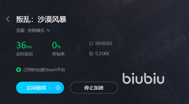 游戲的加速效果也是全程公開(kāi)透明的,玩家可以在biubiu平臺(tái)上看到沙漠風(fēng)暴游戲的加速情況,實(shí)時(shí)監(jiān)控。不過(guò)要記住的是,在結(jié)束游戲之后要回到biubiu關(guān)掉加速按鈕,減少電腦運(yùn)行出現(xiàn)的內(nèi)存空間。